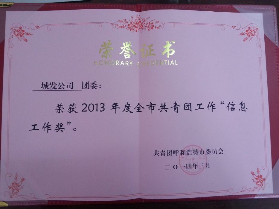 城發(fā)公司團(tuán)委獲得2013年度全市共青團(tuán)工作“信息工作獎(jiǎng)”