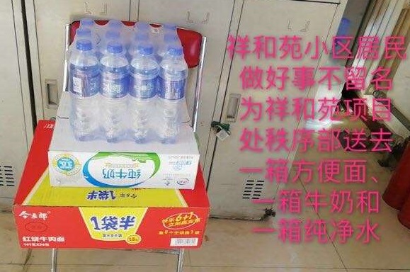 康居家園公租房好心住戶,第一時間把2箱84消毒液、100個口罩送到了項目經(jīng)理手中,便利店工作人員送來了方便面。祥和苑公租房不愿留下姓名的業(yè)主把方便面、牛奶、礦泉水放到了秩序維護部。惠新苑公租房志愿者張進軍捐贈了25千克消毒液、20雙勞保手套。兄弟單位金橋熱網(wǎng)分公司為物業(yè)工作人員提供了護目鏡。