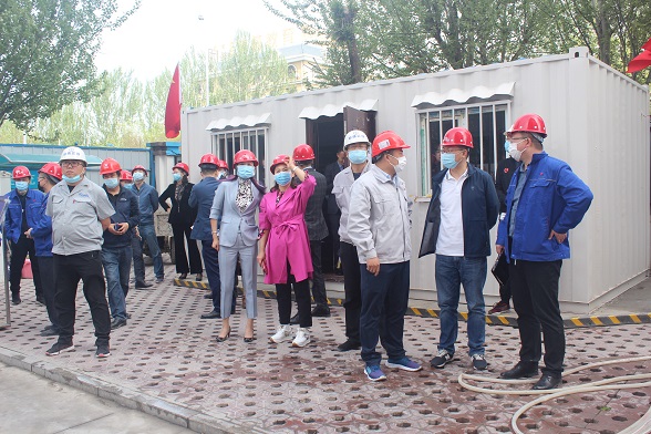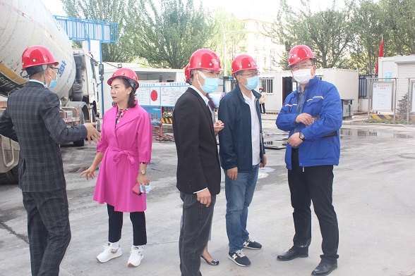 儀式結束后,一行人來到位于金牛座底商的售樓部參觀檢查裝修情況。目前,該項目3-10層二次結構已施工完成,4、5層墻體抹灰全部完成,樣板間裝修施工正在進行。