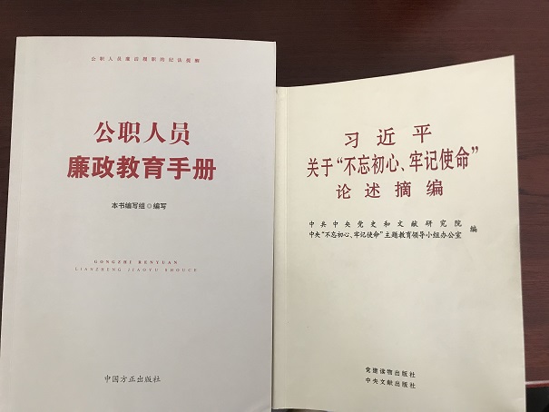 會上還學(xué)習(xí)了《習(xí)近平關(guān)于“不忘初心、牢記使命”重要論述選編》第五章——把政治建設(shè)擺在首位,不斷增強“四個意識”、堅定“四個自信”、做到“兩個維護”。《公職人員廉政教育手冊》國企領(lǐng)導(dǎo)人切莫損公肥私、國企領(lǐng)導(dǎo)人不得濫用經(jīng)營權(quán)等方面內(nèi)容。